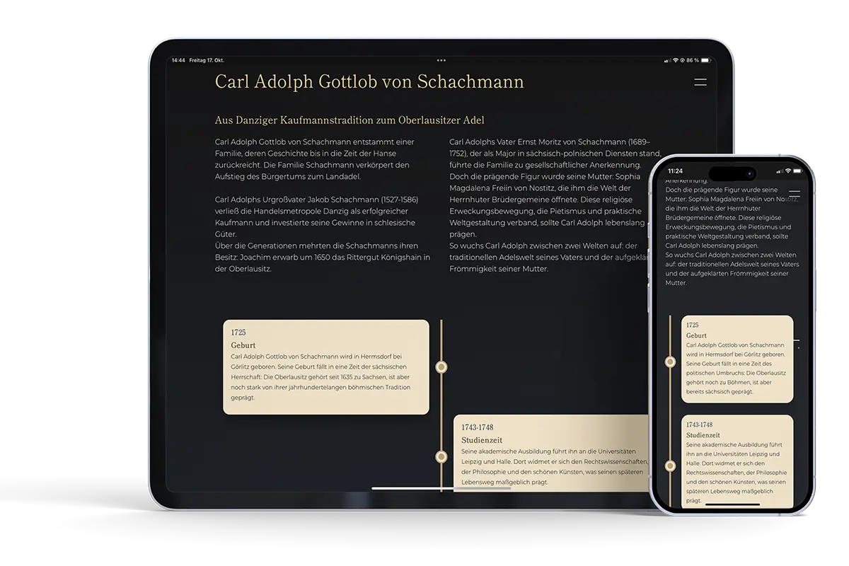 Wie erzählt man die Geschichte eines Aufklärers aus dem 18. Jahrhundert so, dass sie heute noch fesselt? Die Gemeinde Königshain zeigt es zum 300. Geburtstag von Carl Adolph Gottlob von Schachmann: mit einer browserbasierten Tourismus App, die WebXR-Technologie für regionales Storytelling nutzt.